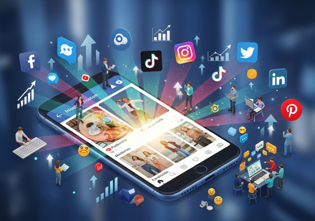 All posts are optimized with keywords, trending hashtags, and CTAs to improve reach and search visibility.